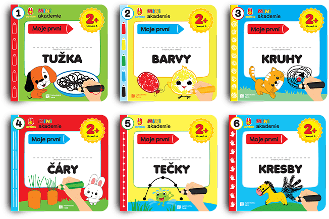Děti si velmi oblíbily pracovní sešity s úkoly se skvrnami, úkoly s obkreslováním ruky, a co teprve čáry a kuličky, poznávání barev, kouzlo nálepek… Děkujeme tvůrcům za MINI akademii! Je vítána nejen u nás doma, ale i ve školce.